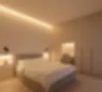 In our compact bedroom designs, we intentionally draw the eye upward by: